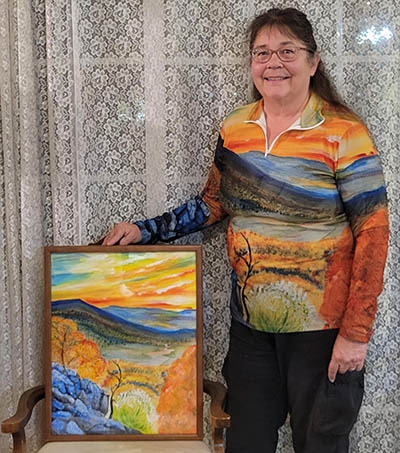 What’s a girl to do? Once career girl Sandra Baldwin retired, she cast about for a hobby to while away the time. Little did she know she would find success in the field of art. After taking one acrylic painting class, she fell in love with that media and never looked back. She heard positive reviews from friends and family, and so, accepted commissions for family pets. Later, she branched out into wearable art, accessories and home goods.